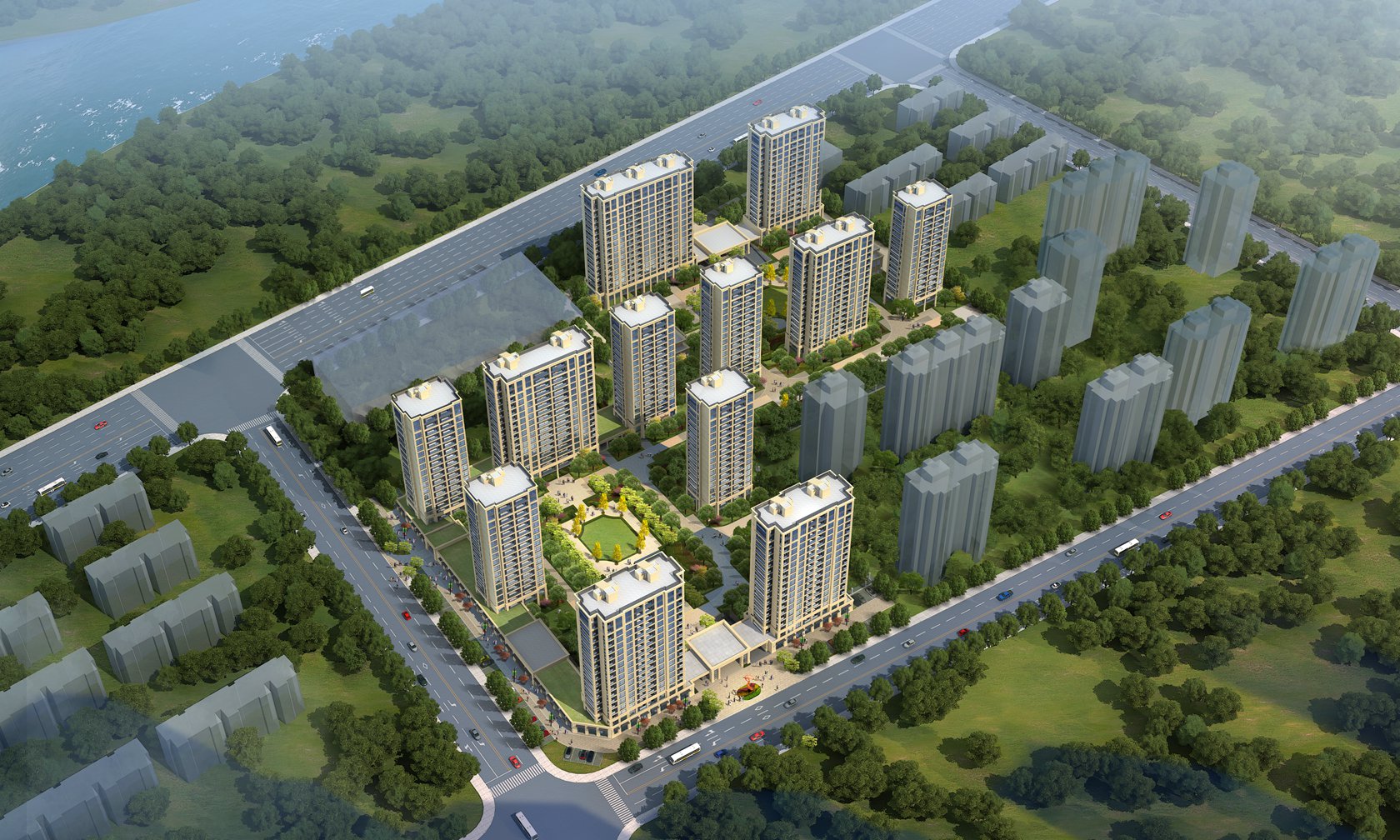 5、人車分流,保證中心組團(tuán)環(huán)境的完整、安寧,創(chuàng)造和諧、融洽的鄰里生活與文化,營(yíng)造良好的居住環(huán)境;