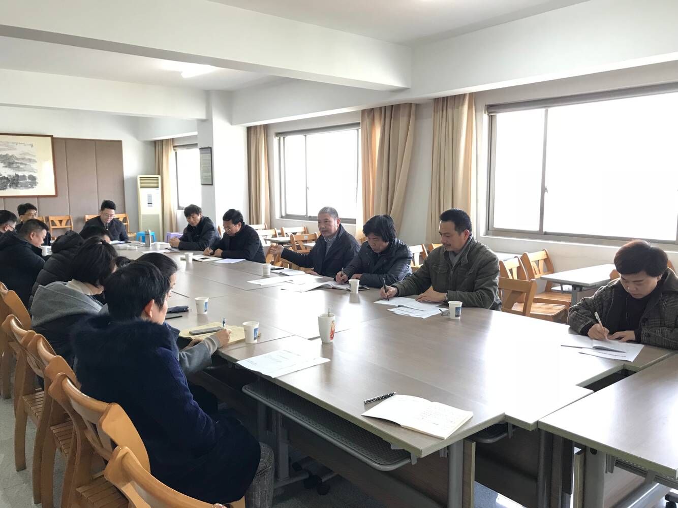 2018年12月24日下午,公司在11樓會議室召開了中層及以上管理人員會議。會議由公司副總經(jīng)理樓希龍主持。公司領(lǐng)導(dǎo)及二十余位中層管理人員參加會議。會議傳達(dá)了關(guān)于聘任王欣為金華市龍?jiān)唇ㄔO(shè)工程施工圖審查中心主任及關(guān)于聘任葉肖為金華市建筑設(shè)計(jì)院有限公司辦公室副主任(主持工作)的決定。吳學(xué)敏總經(jīng)理就為什么調(diào)整龍?jiān)粗行陌嘧蛹霸O(shè)計(jì)公司辦公室班子、班子調(diào)整怎樣產(chǎn)生的等事項(xiàng)作了說明;并對兩位新調(diào)整人員提了要求;二位新提拔同志作了表態(tài)發(fā)言。會議還通報(bào)了近期重要工作。.jpg)